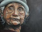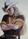 2010Portret van mijn tante. Inmiddels is ze 30 jaar ouder. Maar deze foto heb ik altijd heel stoer gevonden. Vandaar dat ik dit schilderij graag wilde maken.